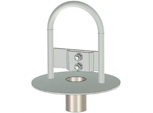 Denna förankring för vår pålboj är tillverkad i varmgalvaniserat stål. Förankringen består av ett genomgående rör med ett kraftigt beslag på ovansidan. Tampen eller vajern låses med hjälp av en kraftig bricka.